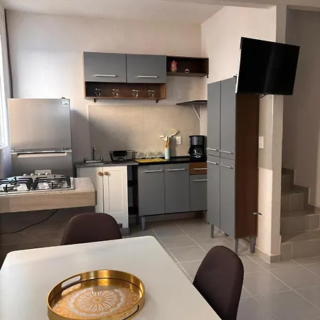 Lindo Y Espacioso Departamento Con Roof Privado Y Alberca apartment features a fully furnished kitchen.